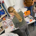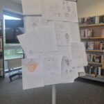 Während einige Besucher:innen weiter stöbern, probieren andere den Manga Zeichenkurs aus, der an diesem Tag kostenlos in der Bibliothek angeboten wird. Dafür wurde im Jugendbereich der Bib ein langer Tisch, ausgestattet mit Papier und Stiften, aufgebaut. Für viele Teilnehmer:innen ist der Kurs ihr persönliches Highlight an diesem Tag. Auch Ezgi ist begeistert: „Wir lernen einiges über die Anatomie und den Aufbau des Körpers, um die Anime- und Manga-Figuren möglichst realistisch zu Papier bringen zu können“. Sam, der den Workshop leitet, erklärt, dass das japanische Wort „Chibis“ klein oder winzig bedeutet und einen für Manga beliebten Zeichenstil beschreibt. Auch zur japanischen Geschichte weiß Sam einiges zu erzählen, wir hören ihm gespannt zu, während wir versuchen einen proportional korrekten Manga-Körper zu zeichnen. Abschließend präsentieren wir unsere Werke in der Runde und sind begeistert von den Ergebnissen.