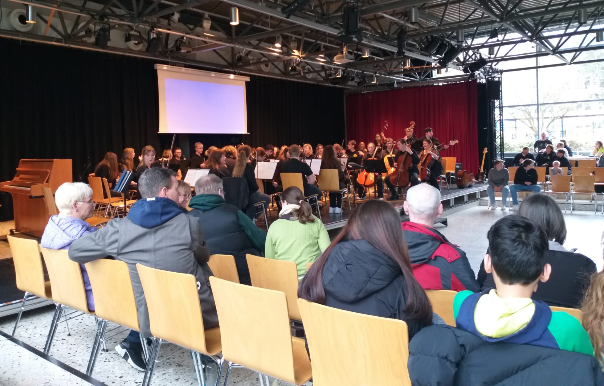 An diesem Nachmittag wurde die schon seit vielen Jahren bestehende Tradition aufgegriffen, bei der die musikalischen Ensembles des Städtischen Gymnasiums wie z. B. die Orchesterklassen der Erprobungsstufe, das B- und A-Orchester des Bachkreises sowie die Chöre der Erprobungs- und Oberstufe einen bunten musikalischen Nachmittag unter der Leitung von Doris Dillkötter, Bettina Jacka, Sina Jacka, Susanne Hidalgo, Dorothea Langenbach, Peter Manteufel, Barbara Markert und Hans-Christian Tacke im Gymnasium gestalten. Die Jahrgangsstufe 5 trat in gewohnter Weise mit ihren Blockflöten auf und zeigte, was in einem dreiviertel Jahr bereits erlernt wurde. Einer der Höhepunkte des Festes war der gemeinsame Auftritt der „Blockflötenlegion“, die gemeinsam mit den Chören und dem B-Orchester den bekannten Film-Song „My Heart Will Go On“ darboten.