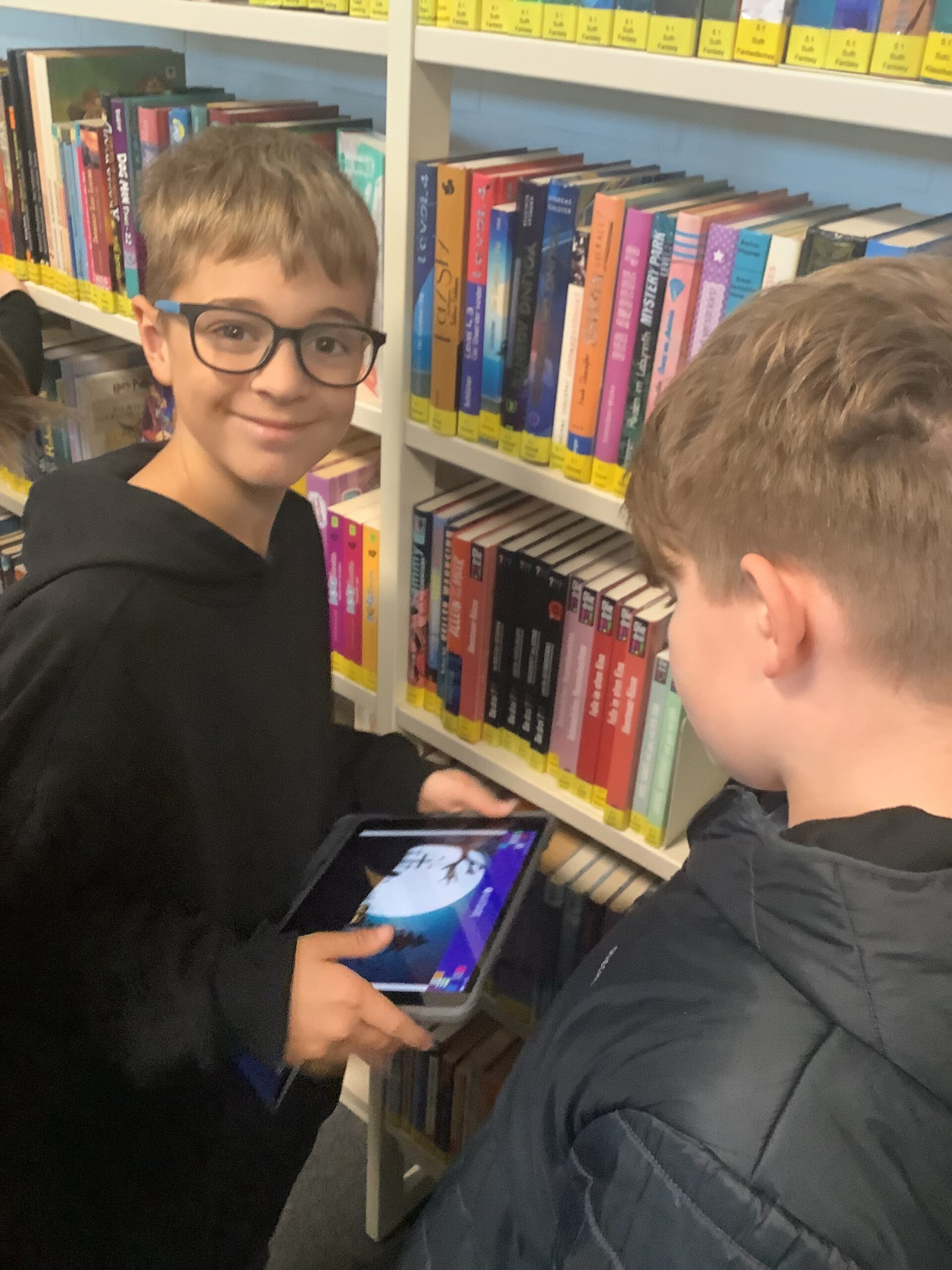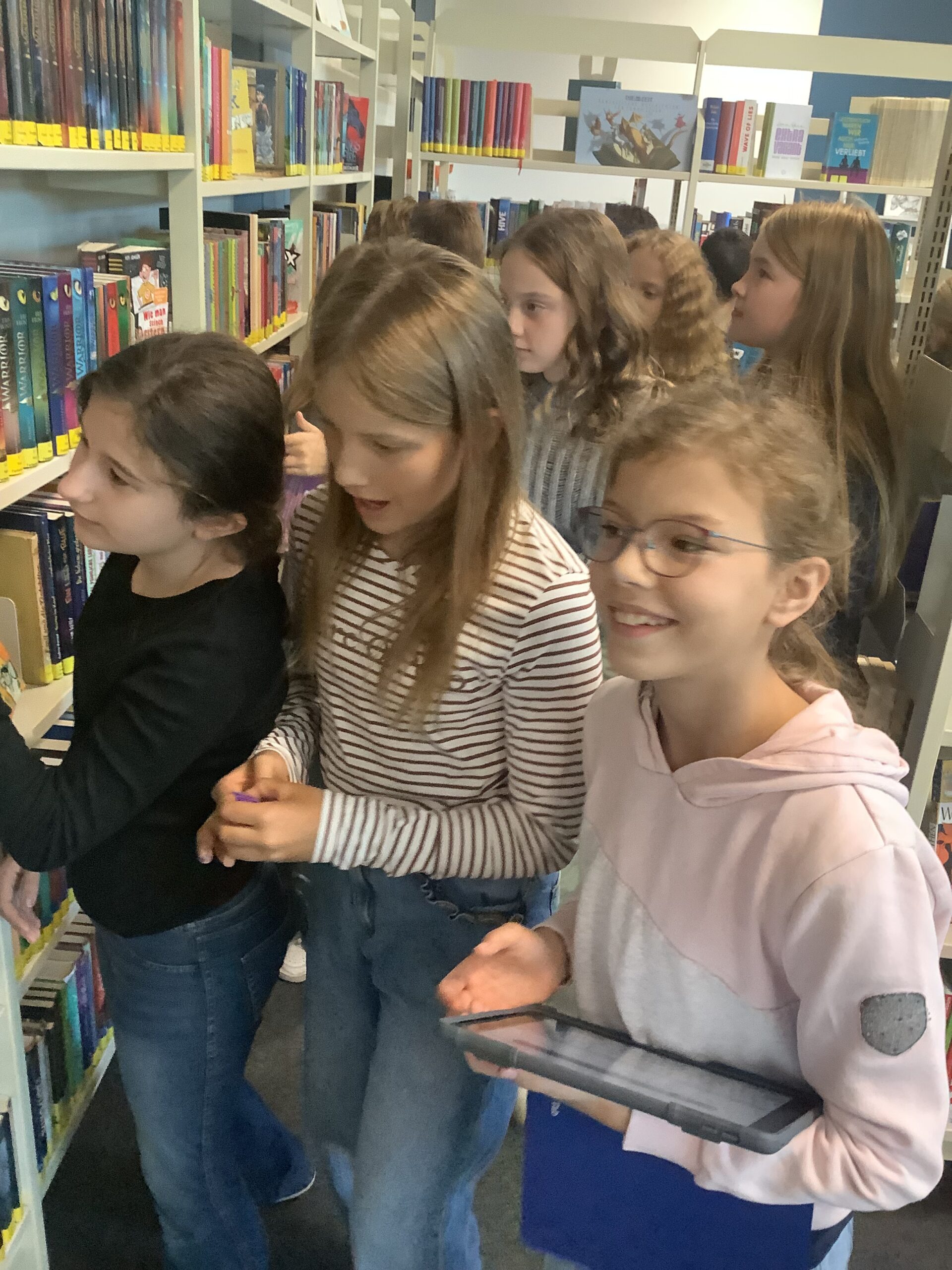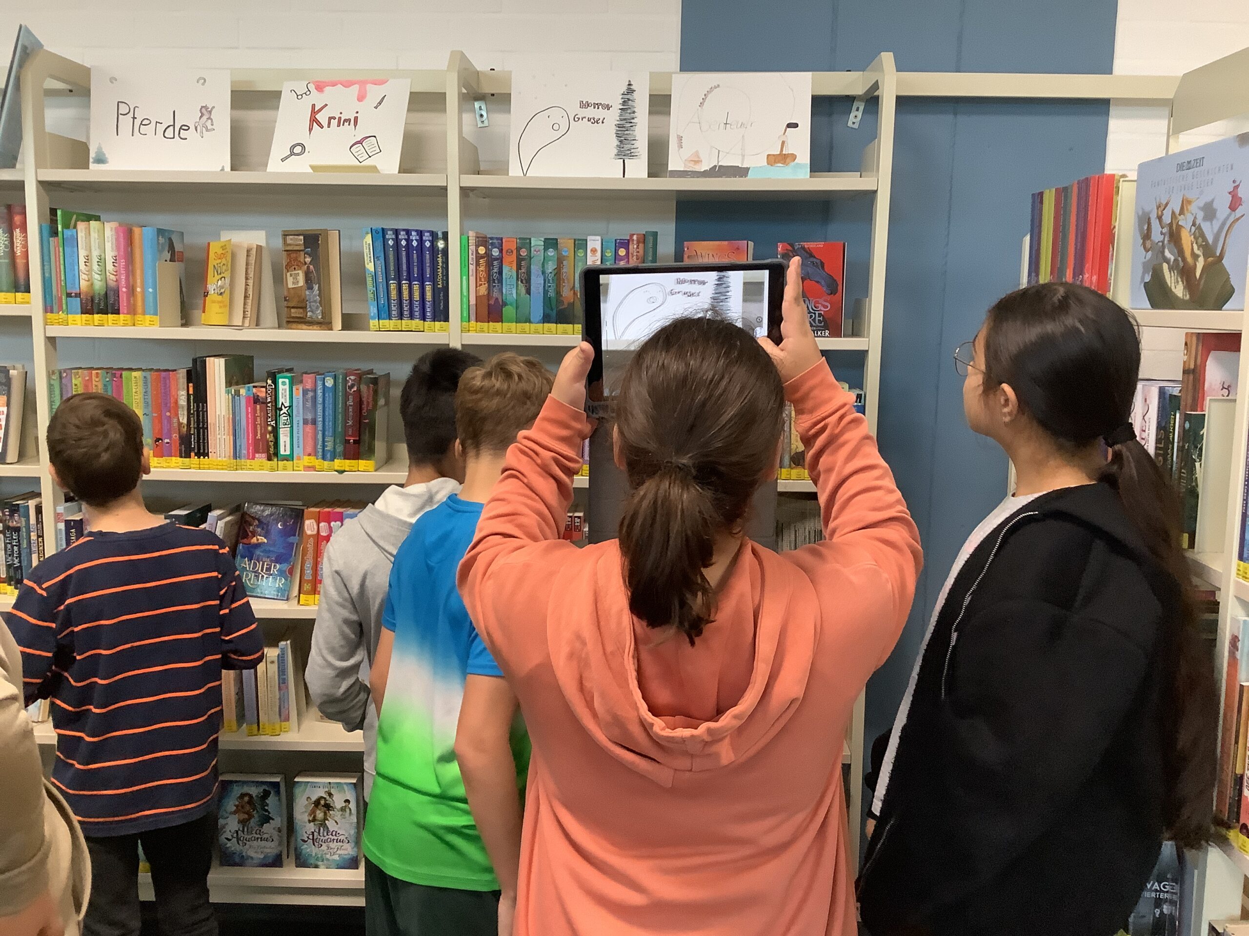 Am Dienstag und Mittwoch, dem 24./25.09. haben die 5c und die 5a den Anfang gemacht und an der Schulbüchereiführung der Lesescouts teilgenommen. Damit die Fünftklässler:innen die Bücherei auf spannende und kreative Weise kennenlernen können, haben die Lesescouts des SGB ein Biparcours-gestütztes Quiz entwickelt, bei dem die Schüler:innen der fünften Klassen Fragen beantworten und Aufgaben lösen müssen: „Wie lautet der Name des Autors der Reihe „Gregs Tagebuch“? Und unter welcher Rubrik findet man die Bücher? Welche Buchreihen mit Satzzeichen im Titel kann man in der Schulbücherei ausleihen? Notiere den Standort und die Signatur! Finde das Buch „Fußball – Auf- und Abwärmen“ und führe die Übung auf S. 37 durch“. Das sind nur einige der Aufgaben rund um den Bestand, die Ausleihe und die Regeln in der Bücherei, die gelöst werden wollen. Am Ende dieser multimedialen Führung erhalten die Schüler:innen ihren eigenen Büchereiausweis, den sie sowohl für die Ausleihe in der Schulbücherei des SGB als auch in der Stadtbibliothek Bergkamen nutzen können. Nun steht dem Schmökern in und dem Ausleihen von Büchern nichts mehr im Wege!