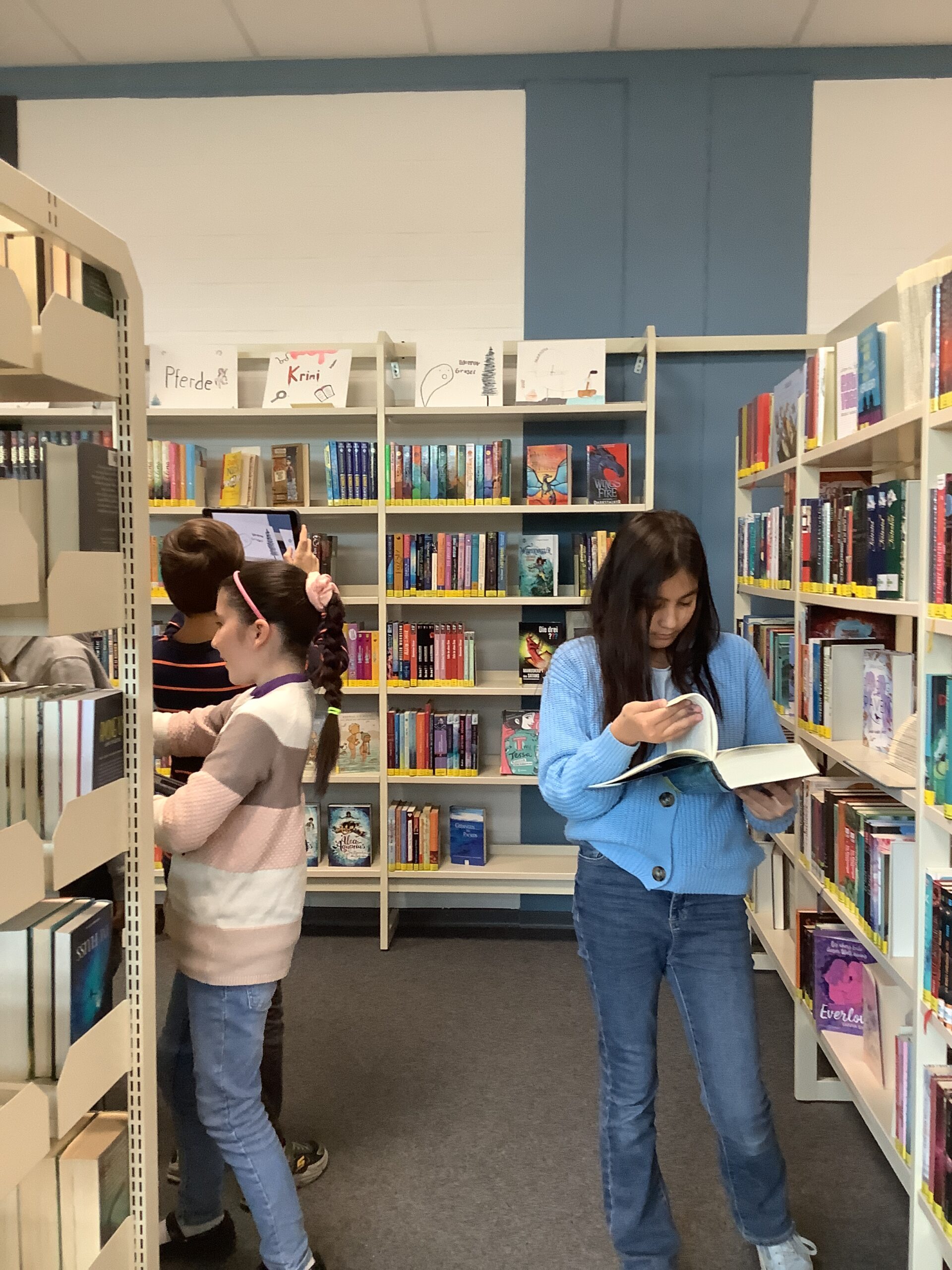 Wer sind die Lesescouts? Die Lesescouts sind Schüler:innen der Jahrgangsstufen 6-10, die mit kreativen Aktionen Bücher und das Lesen in den Fokus rücken und dabei den Spaß- und Spannungsfaktor beim Lesen an ihre Mitschüler:innen weitergeben möchten. Die Lesescouts planen und organisieren im Team eigene Aktionen rund um das Lesen: Ob die selbst entwickelte Büchereiführung, winterliche Vorlesepausen in der Schulbücherei, Buchrezensionen zu Lieblingsbüchern oder die Unterstützung der Lesenacht einer 5‘ten und 7‘ten Klasse – die Lesescouts möchten ihren Mitschüler:innen zeigen, wie viel Spaß und Spannung in Geschichten stecken. Begleitet werden sie dabei von Anja Ganster, die die AG seit Beginn des letzten Schuljahres leitet.