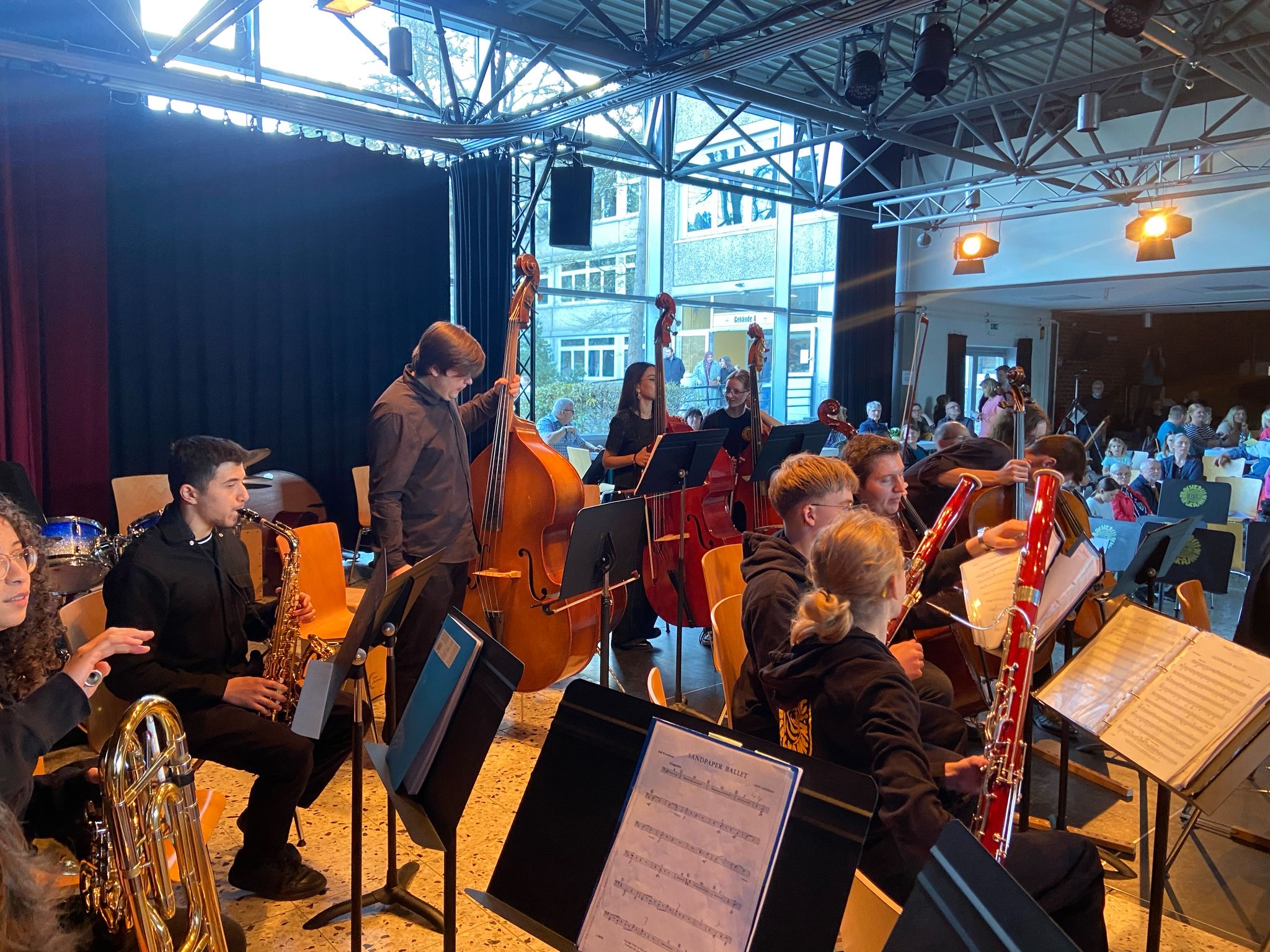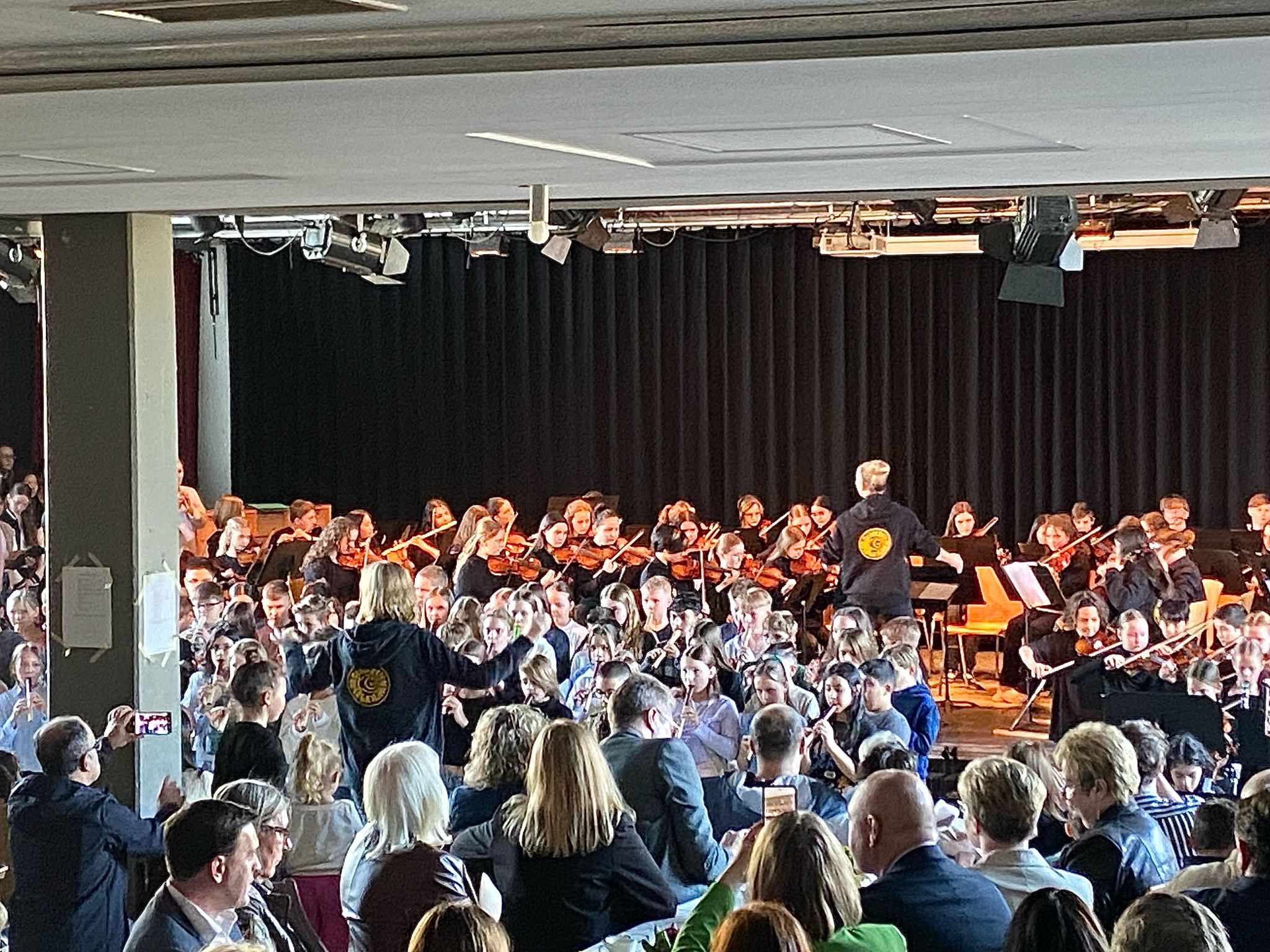 Den Auftakt machten die Fünftklässler mit ihren Blockflöten und begeisterten die Gäste mit ersten gemeinsamen Stücken. Danach zeigten die Orchesterklassen, das B-Orchester und das A-Orchester ihr Können und füllten den Raum mit wunderbaren Melodien.
