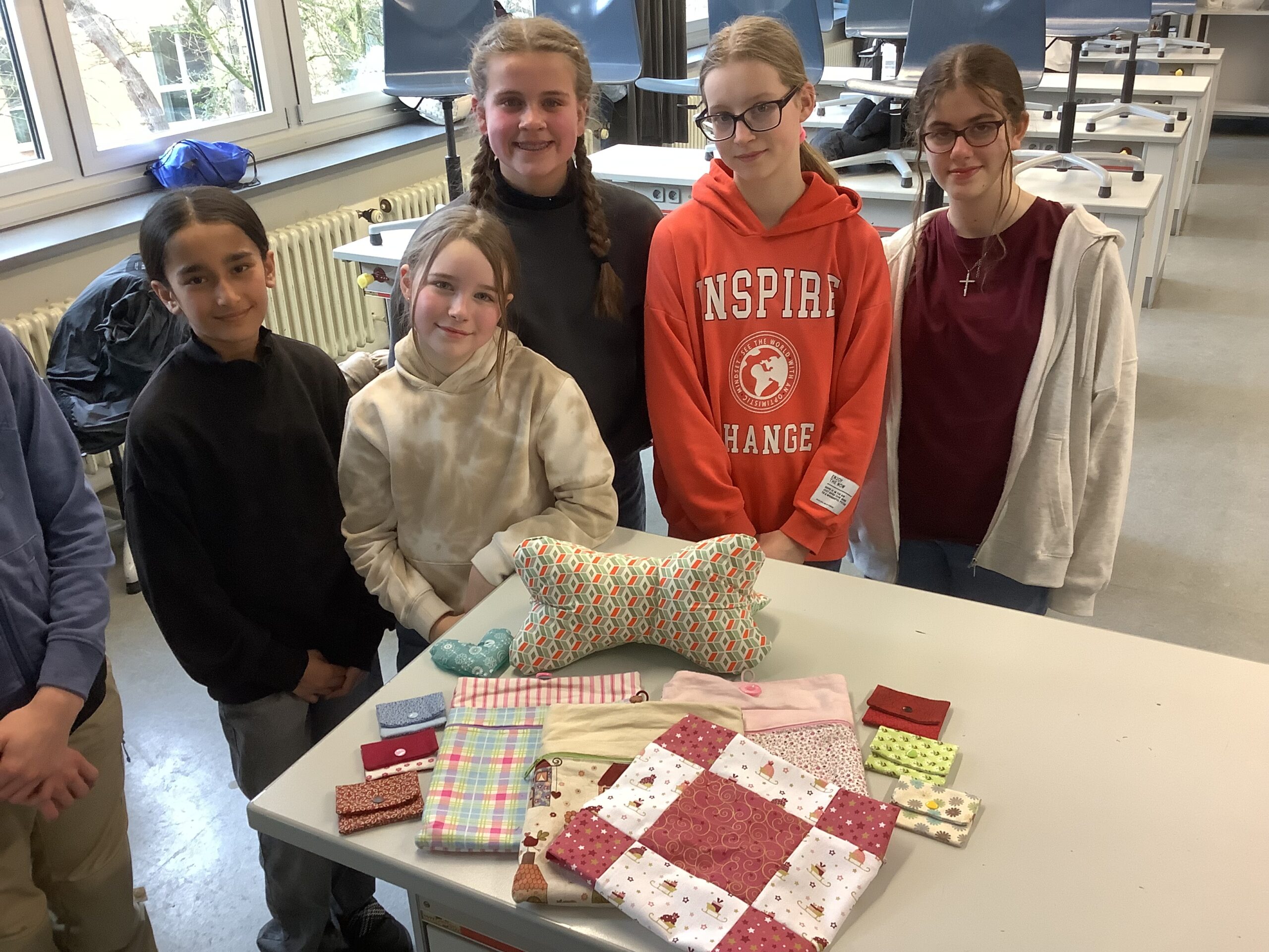 Die Idee zu der Spende entstand im Anschluss an das letzte Weihnachtskonzert am SGB, bei dem die Schülerinnen und Schüler der Näh-AG durch den Verkauf ihrer vielfältigen Produkte einen höheren Erlös eingenommen hatten und diesen einem guten Zweck zukommen lassen wollten. Die Schüler:innen waren sofort begeistert von der Idee ihrer begleitenden Lehrkraft Anna Niggemeier, die Kinder im Heim zu unter-stützen und ihnen damit vielleicht den ein oder anderen kleinen Wunsch erfüllen zu können.