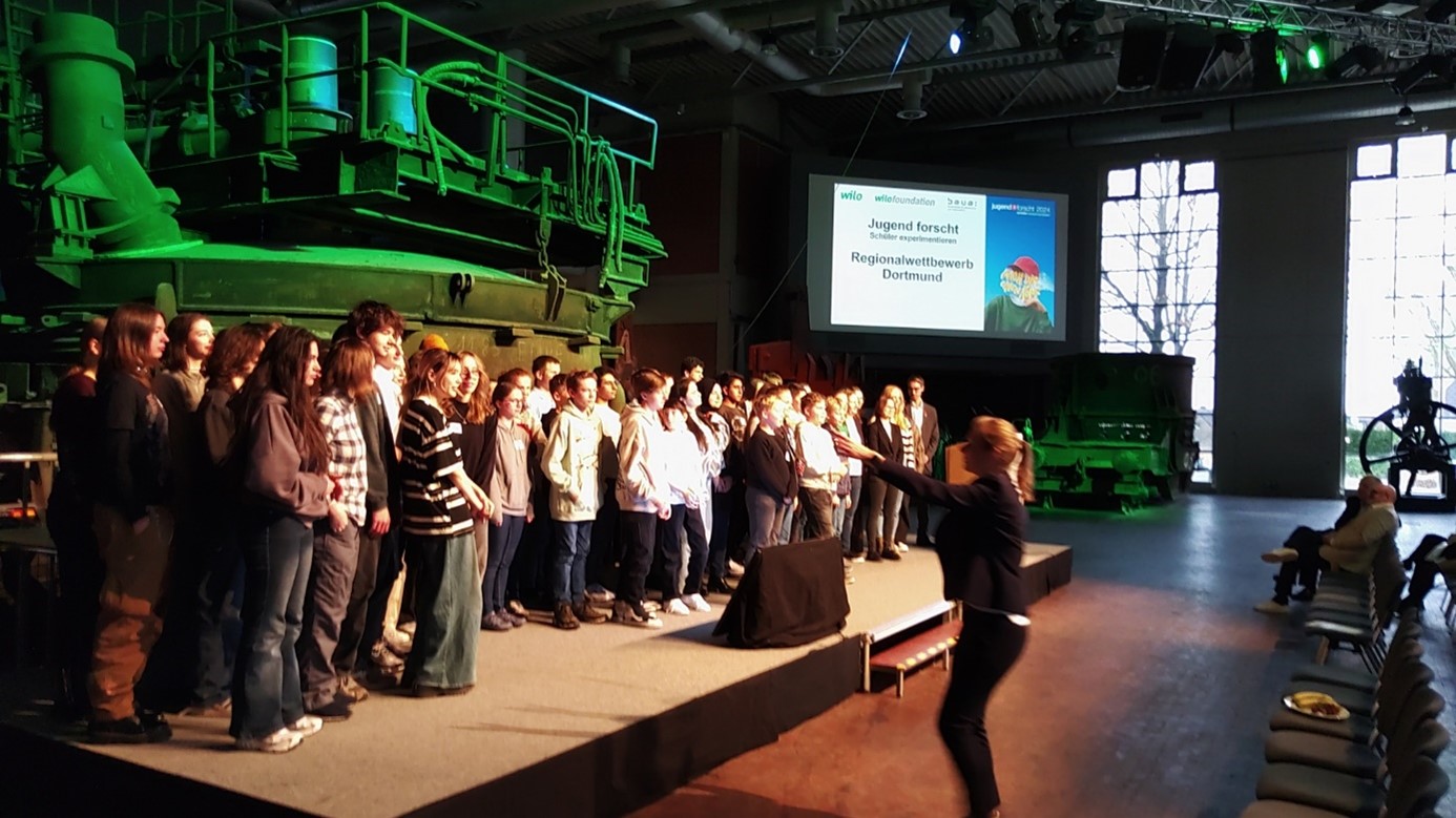 Am Mittwoch, dem 21.02.24, fand in der Energiehalle der DASA in Dortmund der Regionalwettbewerb „Jugend forscht – Schüler experimentieren“ statt, bei dem das SGB von Sven Witte (8c) mit seinem Projekt „Rocket Candy auf der Waage“ in der Sparte Chemie vertreten wurde.