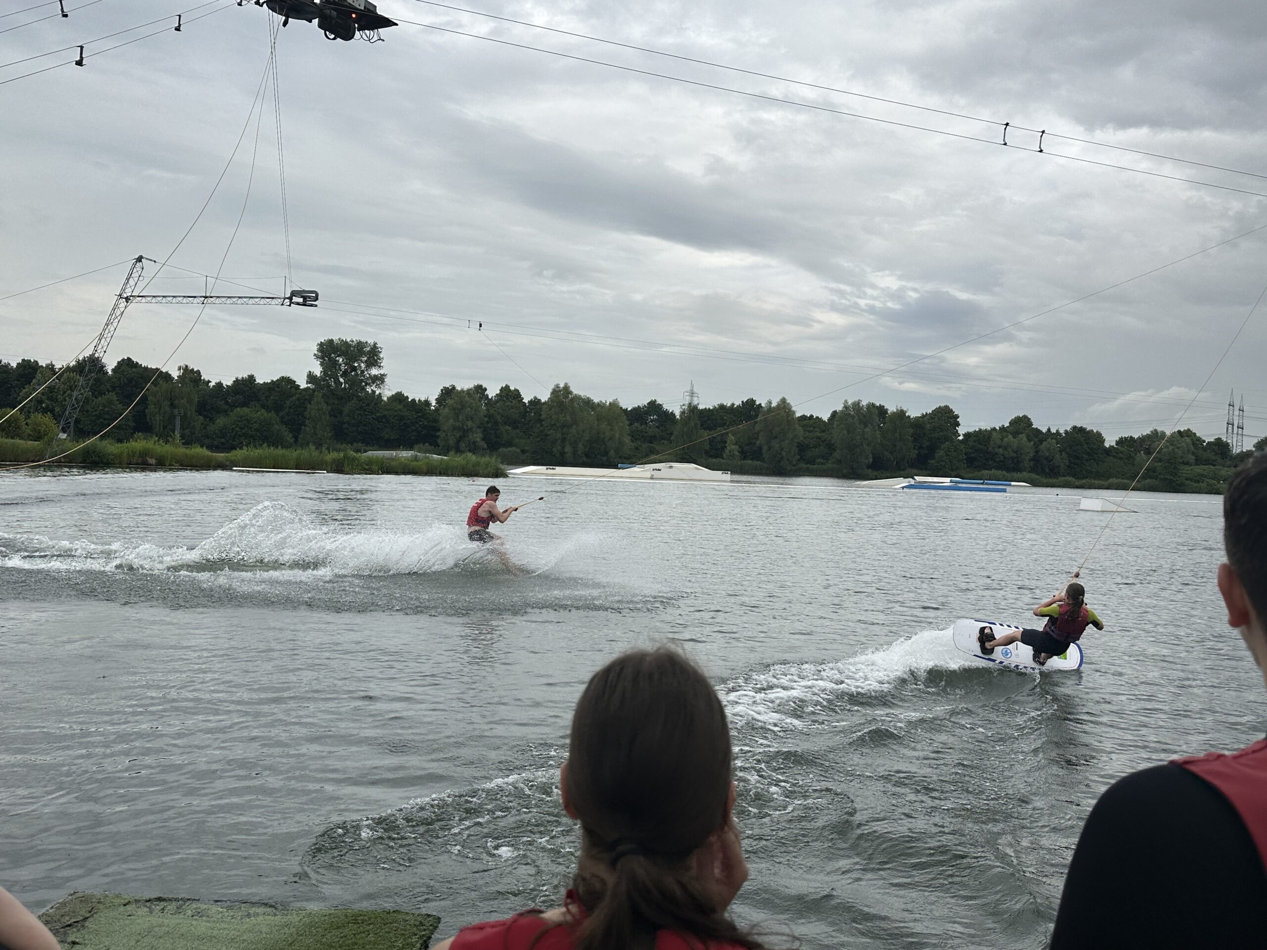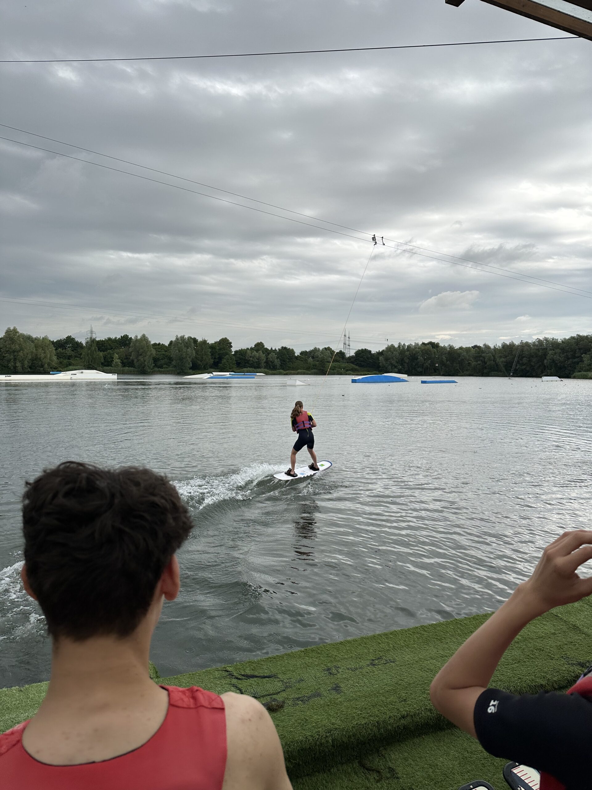 Um das Schuljahr 2024/25 Revue passieren und angemessen ausklingen zu lassen, haben sich die Schüler:innen und Schüler des Schulsanitäts-dienstes mit ihren beiden begleitenden Lehrkräften Victoria Paul und Marius Breer am Donnerstag, den 26.06. auf den Weg zur Wasserski-Anlage in Hamm gemacht.