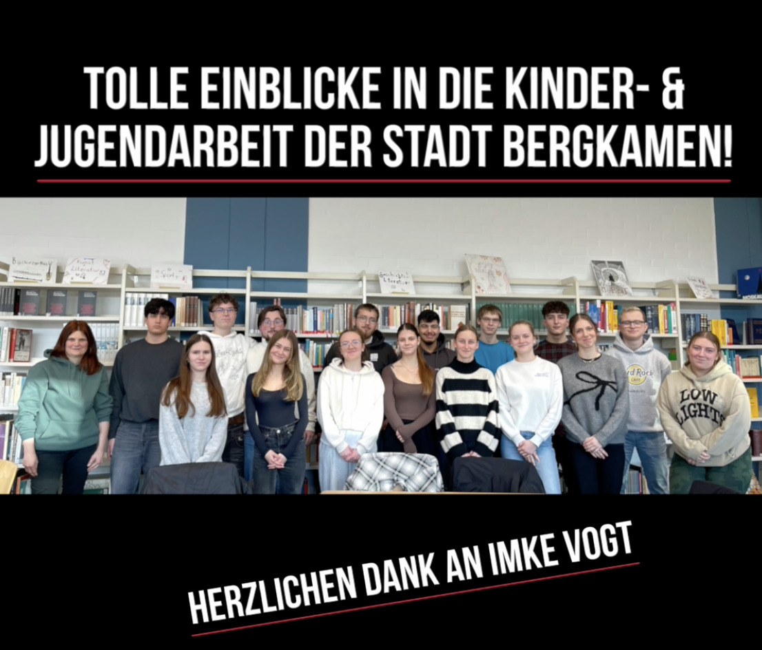 Der Sowi-Zusatzkurs der Q2 hat sich im Rahmen des Unterrichts intensiv mit dem Thema Sozialpolitik beschäftigt. Ein besonderer Fokus lag dabei auf Hilfsmaßnahmen für Kinder und Jugendliche in unserer Heimatstadt Bergkamen. Um praktische Einblicke zu gewinnen, lud der Kurs gemeinsam mit seiner Lehrerin Maria von dem Berge am Dienstag, dem 28.01.2015 die erfahrene Sozialarbeiterin Imke Vogt vom Kinder- und Jugendbüro der Stadt Bergkamen zu einem Interview ein. Imke Vogt berichtete über ihre persönliche Motivation, ihre langjährige Arbeit im Bereich Streetwork sowie über die Rolle der Freizeitzentren in Bergkamen und deren Zugänglichkeit für Kinder und Jugendliche. Zudem sprach sie über die Zukunft und die Herausforderungen der Sozialarbeit – sowohl in Bergkamen als auch im Allgemeinen. Die Schülerinnen und Schüler verließen die Veranstaltung mit vielen neuen Eindrücken und einem tieferen Verständnis für die wichtige Arbeit im Bereich der Sozialpolitik. Vielleicht hat diese spannende Begegnung ja sogar bei einigen das Interesse an einer beruflichen Laufbahn in diesem Bereich geweckt. Ein herzliches Dankeschön an Imke Vogt für den bereichernden Austausch und ihre wertvolle Arbeit für unsere Stadt!