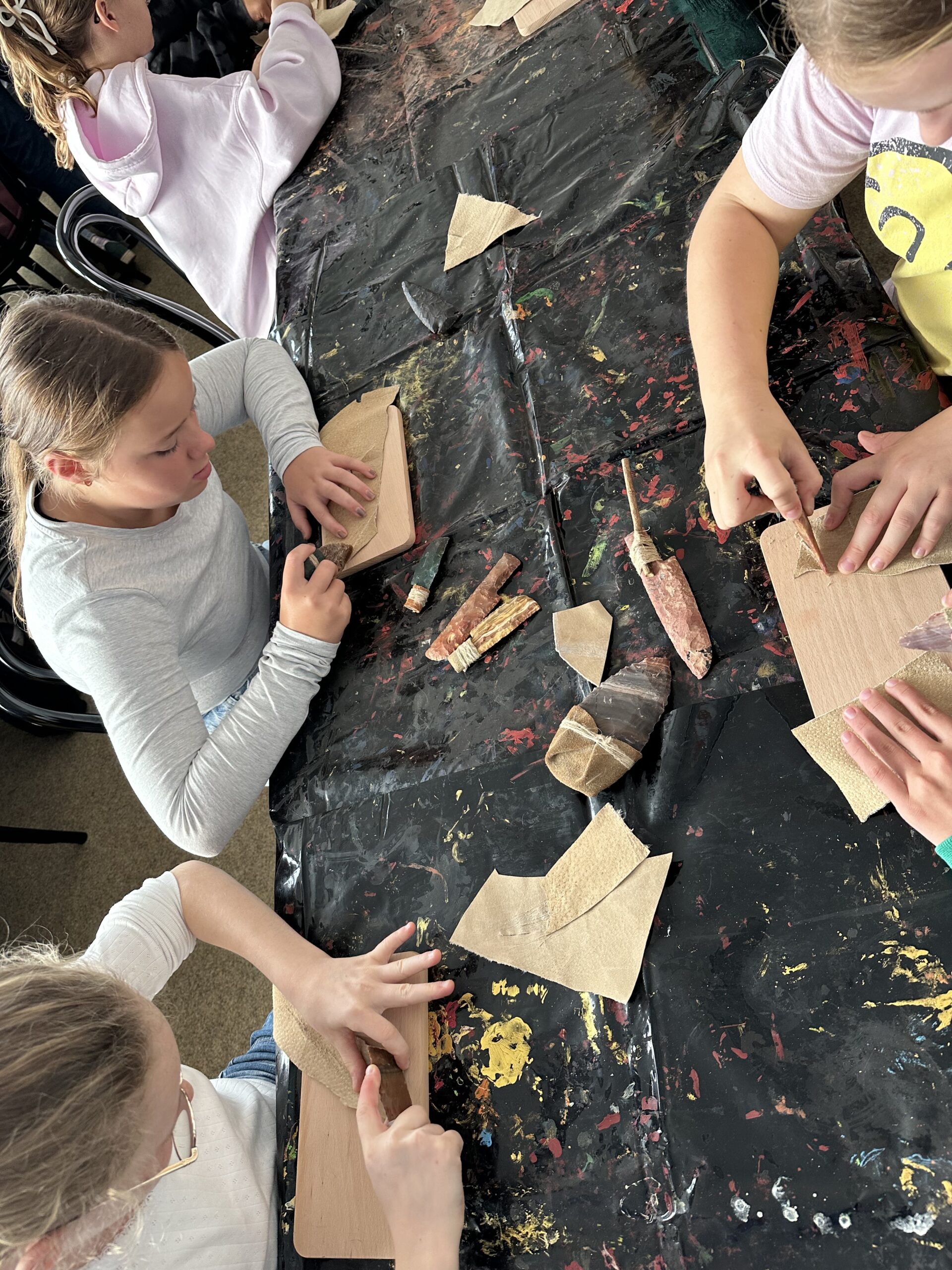 Eineinhalb Stunden lang tauchten sie geleitet von der kundigen Museumspädagogin in den steinzeitlichen Alltag ein, sahen Mammutzähne, einzelne Knochenfunde unserer Region und hörten von den Strapazen eines altsteinzeitlichen Alltags, von der gemeinsamen Jagd und der Bedeutung der Gruppe für das Leben in einem von Eis bedeckten Gebiet, bevor vor etwa 5.000 Jahren auch bei uns die ersten Menschen anfingen, sesshaft zu werden.
