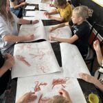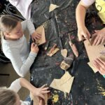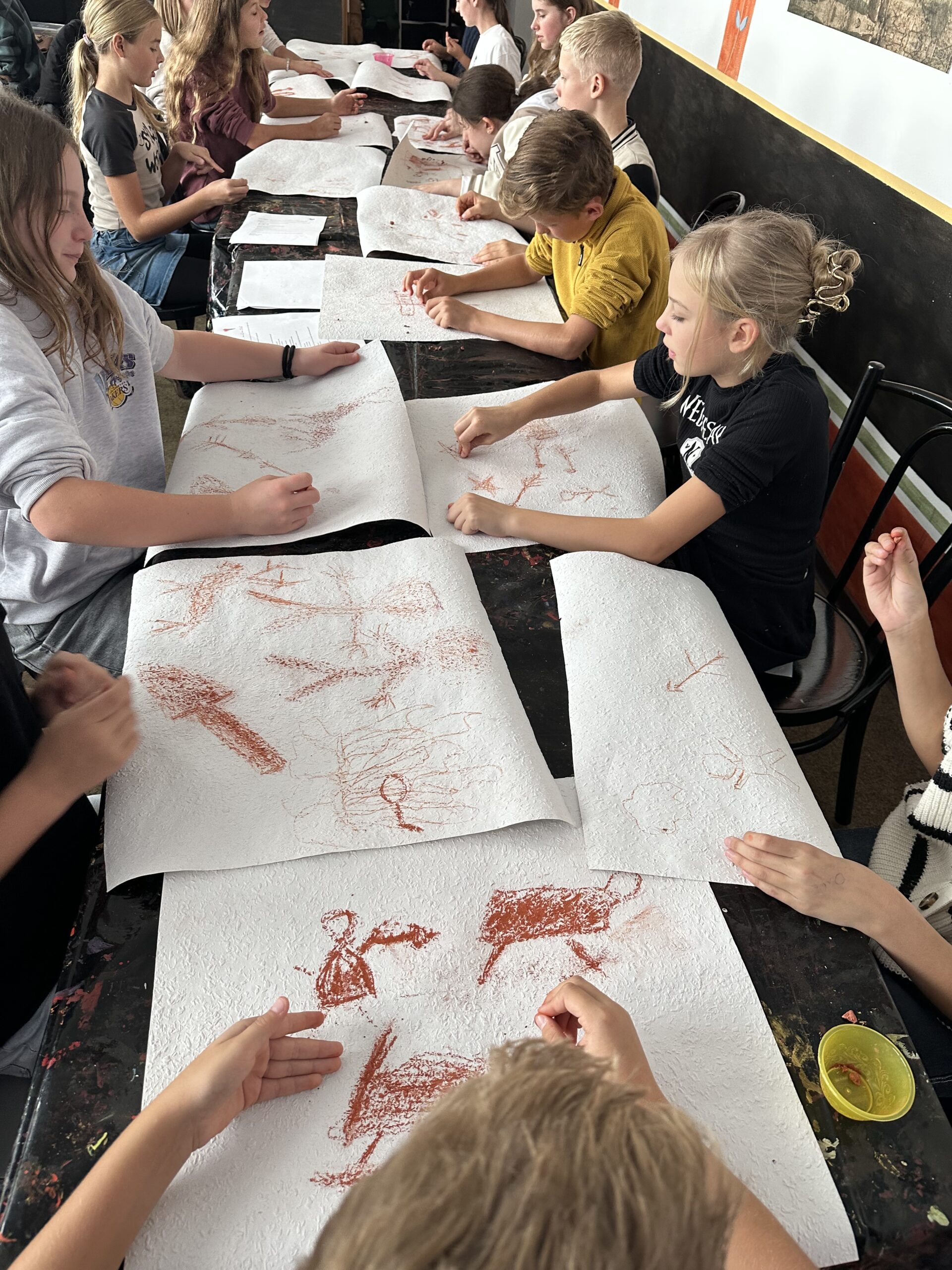 Aber nicht nur das Lebensnotwendige trat in den Blick, auch das steinzeitliche Malen an Höhlenwänden wurde nachgeahmt und mit Rötel wie vor tausenden von Jahren gemalt – heute aber auf einem Stück Raufasertapete anstatt auf die blanke Wand. Was auf dem Stein so einfach wie eindrucksvoll aussieht, ist gar nicht mal so nebenbei nachzumachen. Da steht dann auch schnell die Frage im Raum, warum gemalt wurde – war es aus Langeweile, diente es der Religion, zeigte es die Ehrfurcht vor der Natur, war es künstlerischer Ausdruck oder diente es der eigenen Selbstvergewisserung?